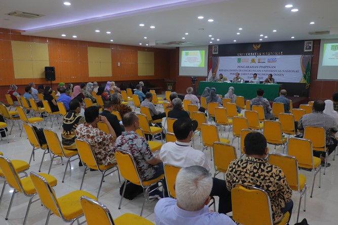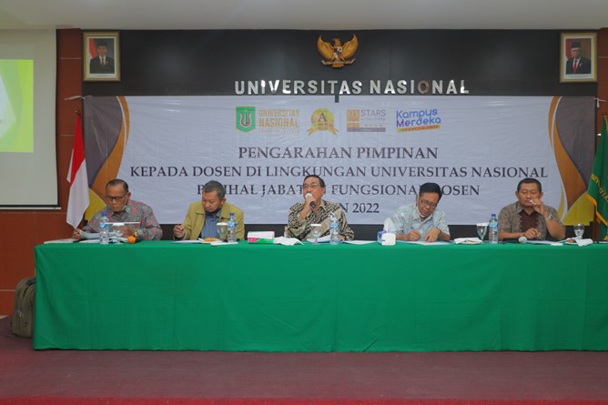 Ia pun mendorong para dosen untuk berkomitmen untuk mengurus kepangkatan dosennya. “Sekali lagi saya tekankan, untuk mengurus jenjang jabatan nya dan kita yakin sebagian besar para dosen sudah siap untuk peningkatan kepangkatan ini”, ujar Ramlan dalam sambutannya pada Pengarahan Pimpinan Kepada Dosen di Lingkungan Universitas Nasional Perihal Jabatan Fungsional Dosen Tahun 2022, Rabu, (27/7) di Aula Blok 1 Unas.