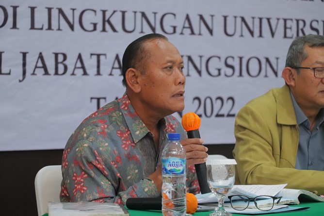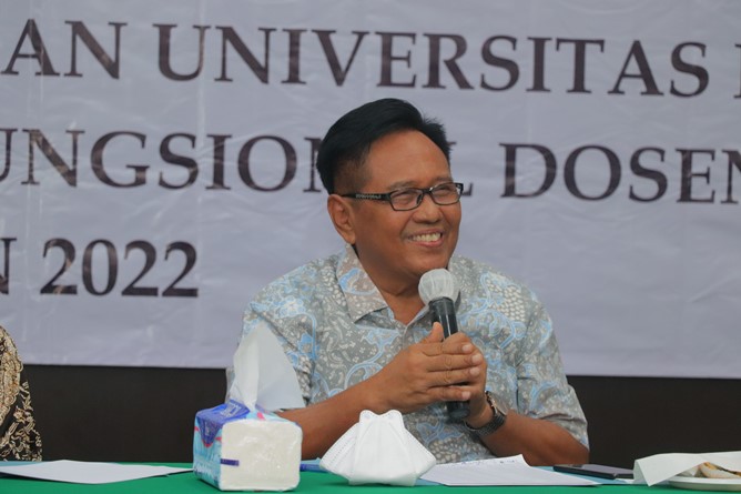 Dalam kesempatan yang sama, Wakil Rektor Bidang Akademik, Kemahasiswaan dan Alumni Dr. Suryono Efendi, S.E., M.B.A., M.M., mengungkapkan bahwa kepangkatan dosen sangat berpengaruh kepada akreditasi program studi dan institusi. Sehingga kenaikan jabatan fungsional akademik perlu menjadi perhatian semua dosen.