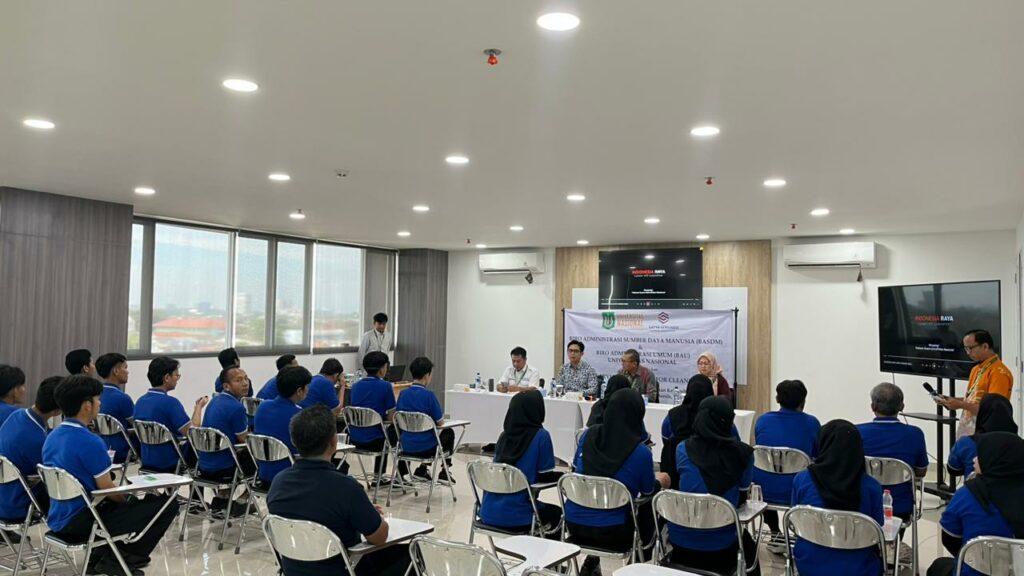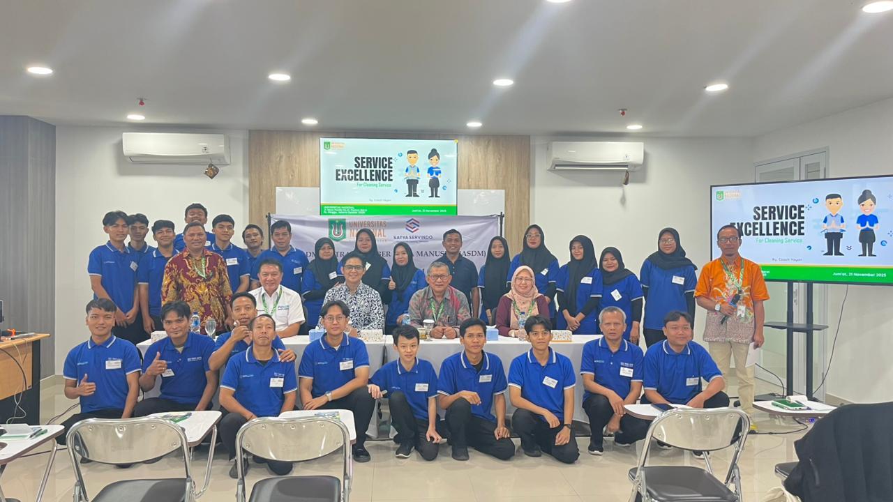 Jakarta – Universitas Nasional (Unas) melalui Biro Adm. Sumber Daya Manusia  bersama Biro Adm. Umum menggelar pelatihan Service Excellence bagi para petugas cleaning service dengan mengusung tema “Meningkatkan Kualitas Pelayanan Kebersihan dalam Mewujudkan Lingkungan Kampus yang Bersih, Sehat, dan Nyaman”.  Kegiatan yang berlangsung pada 21-22 November 2025 di di Ruang 707 Lantai 7, Blok C Universitas Nasional Pejaten, ini merupakan bagian dari komitmen Unas dalam meningkatkan kualitas layanan pendukung di lingkungan kampus. Pelatihan ini dibuka oleh Prof. Dr. Suryono Efendi, S.E., MBA., M.M., selaku Wakil Rektor Bidang Adm. Umum, Keuangan, dan SDM Universitas Nasional. Dalam sambutannya, beliau menegaskan bahwa petugas cleaning service memiliki peran penting dalam menjaga standar kebersihan dan kenyamanan kampus.