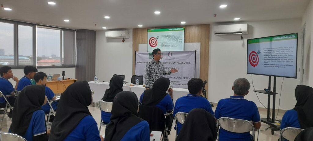 “Lingkungan yang bersih dan sehat adalah faktor utama dalam menciptakan suasana belajar yang nyaman dan kondusif. Melalui pelatihan ini, kami berharap petugas kebersihan dapat memberikan layanan yang lebih profesional dan berorientasi pada kepuasan pengguna layanan,” ujarnya.